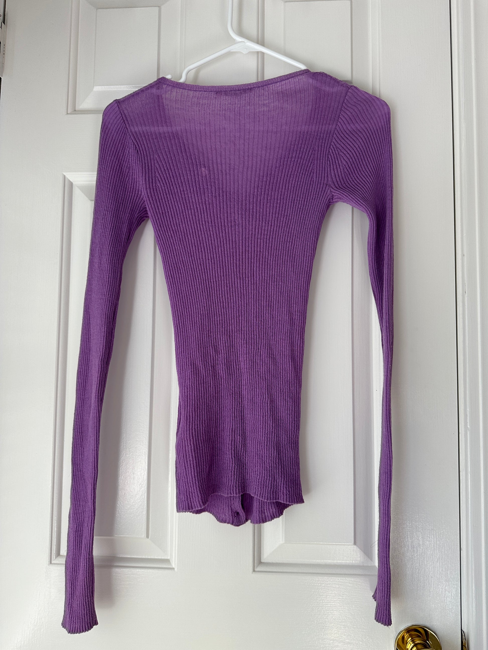AURALEE Purple Ribbed Knit Wool Mohair Cardigan