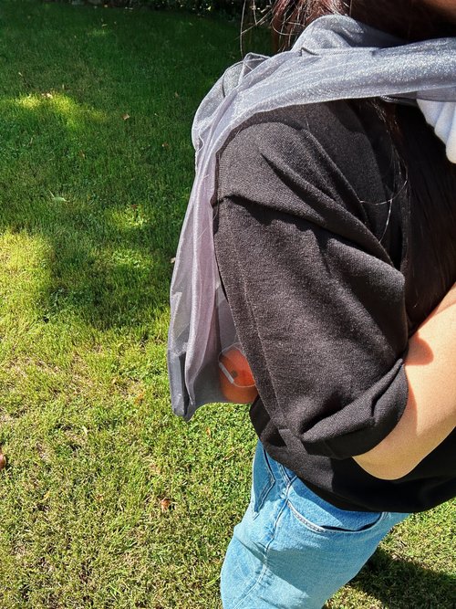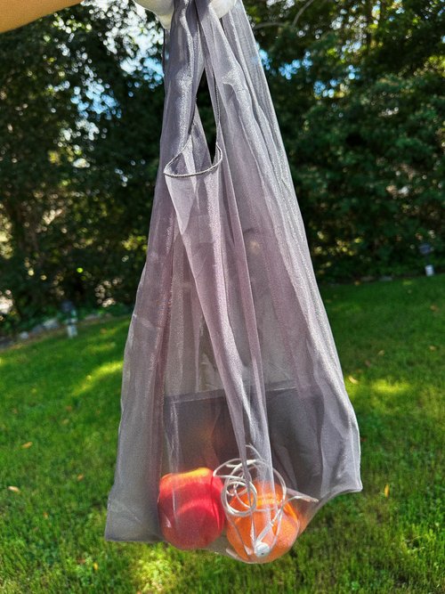 Dark grey silk organza shopper tote.