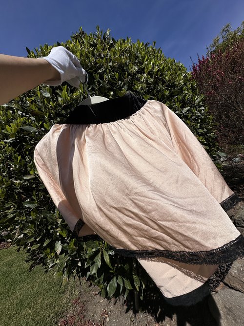 Features what feels like a black velvet waist detail. Elastic waist for easy wear and layering.