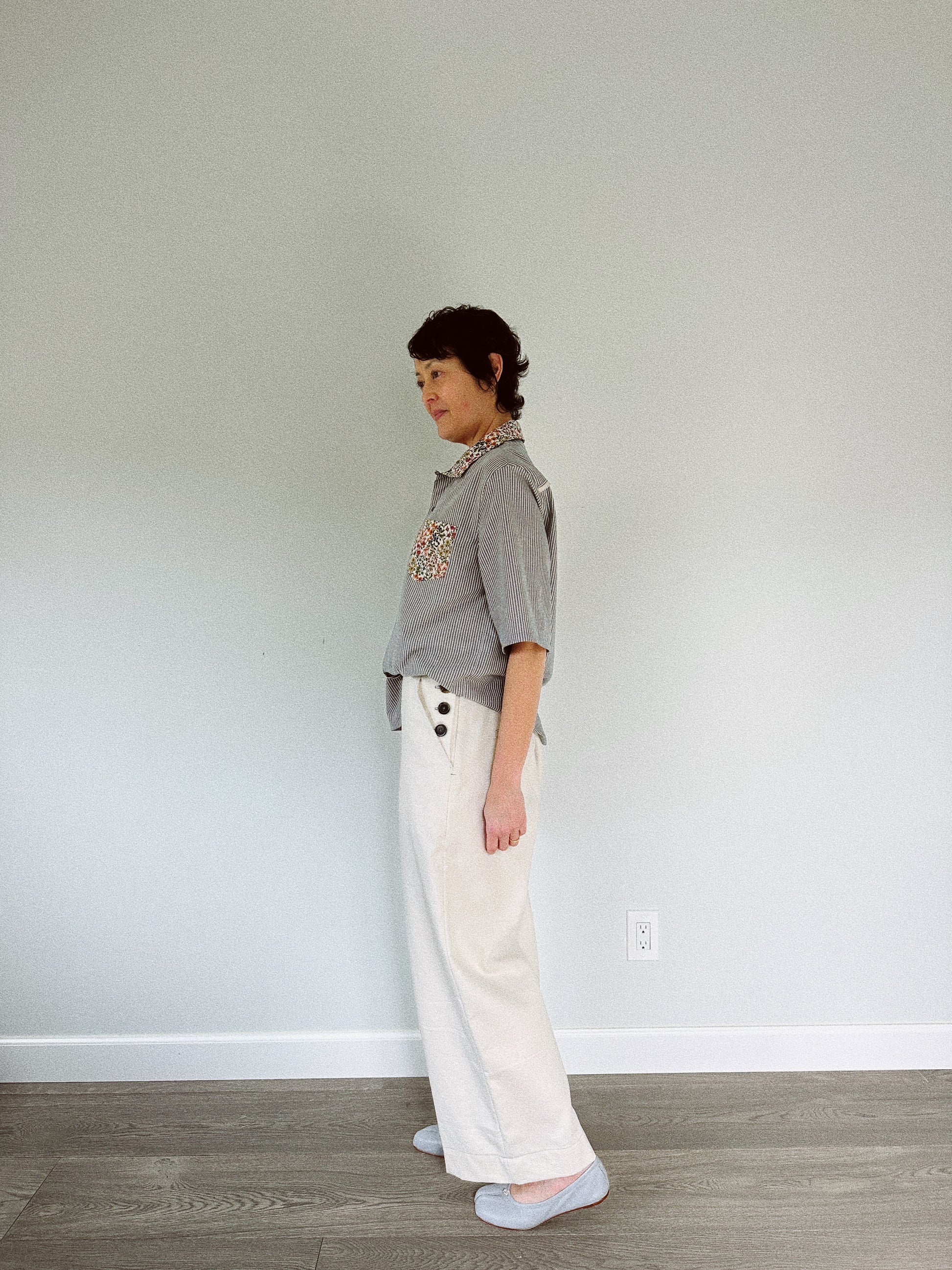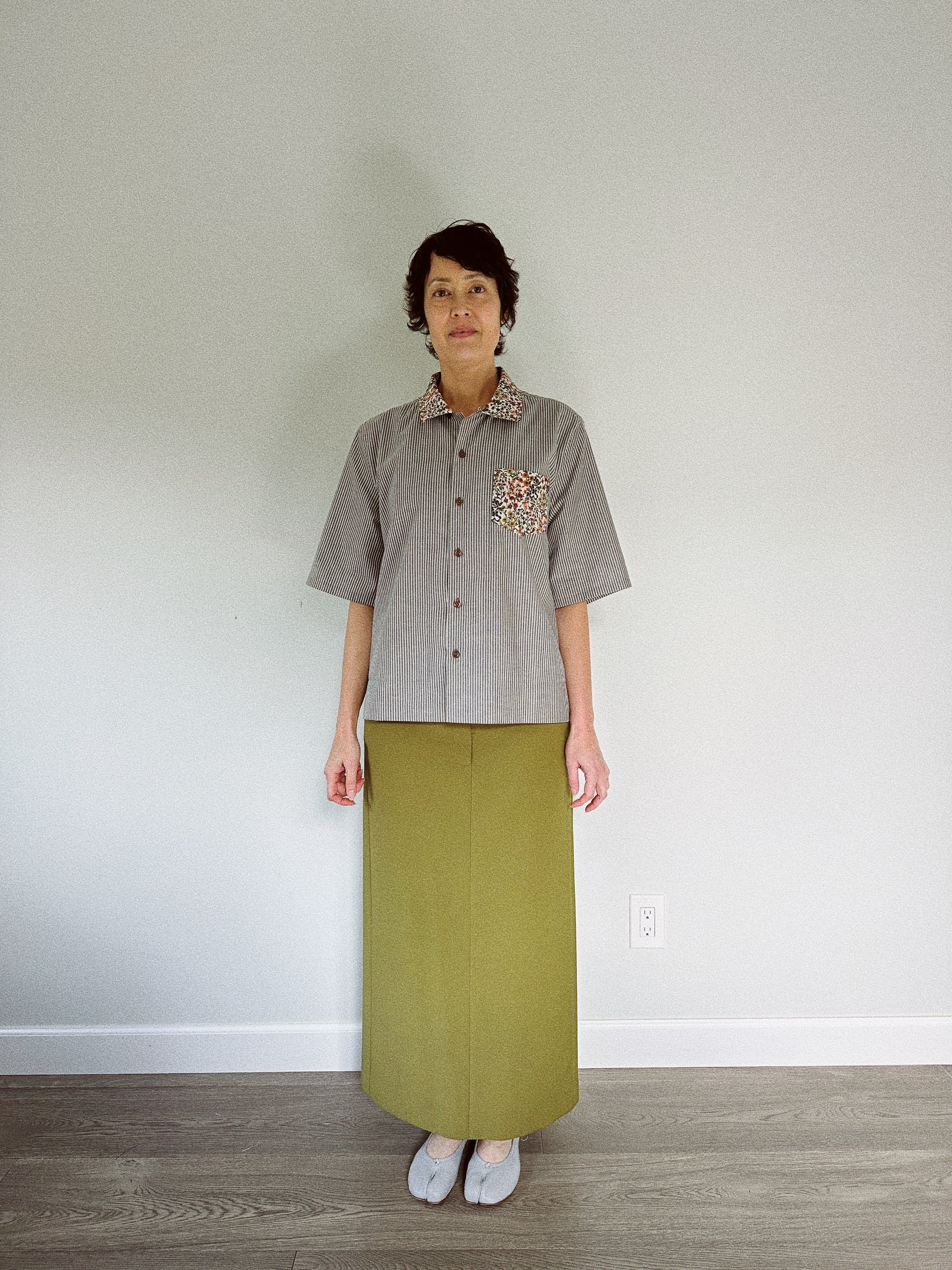 Versatile by design, this shirt pairs effortlessly with sailor-style trousers for a coordinated spring set, or can be styled as a standout layering piece. Wear it buttoned for a polished, tailored look, or open over softer silhouettes like a slim skirt, flowing dress, or delicate lace layer for a modern, dimensional feel.